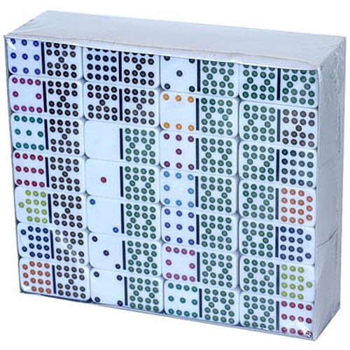 This 190 piece dominos set allows for more players. Double 18s are used primarily for REALLY BIG party games, for large groups of players, and also for expanded games of Chickenfoot and Mexican Train with more players. They have uniform-sized and brightly color-coded pips. The set is packaged in a heavy-duty, black vinyl case with a snap lock closure. Warning Chocking Hazard! Contains small parts, not for children under 3.
