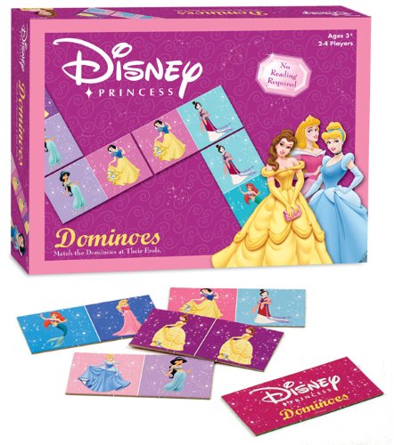 Disney Princess Dominoes is a great game for your little princess. She will enjoy playing this Disney Princess Dominoes game with the whole family. Features Snow White, Cinderella, Sleeping Beauty, Jasmine, Ariel, Belle and Mulan in a magical matching game allowing princesses-in-training to develop their organizational, recognition and concentration skills. The 28 jumbo-size dominoes are durable and easy to play. For 1-4 players, ages 3+.