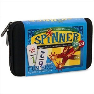 The original Texas Wild domino game! Spinner is a dynamic Double 9 domino game with speed, flexibility and fun to keep the game moving! Includes 66 Fun Size, Double 9, Number Dominoes plus 11 Wild Spinner Tiles, Centerpiece and Rules for Chicken Foot, Mexican Train, Straight Dominoes and Solitaire.For 2 - 8 players, ages 6 and up.